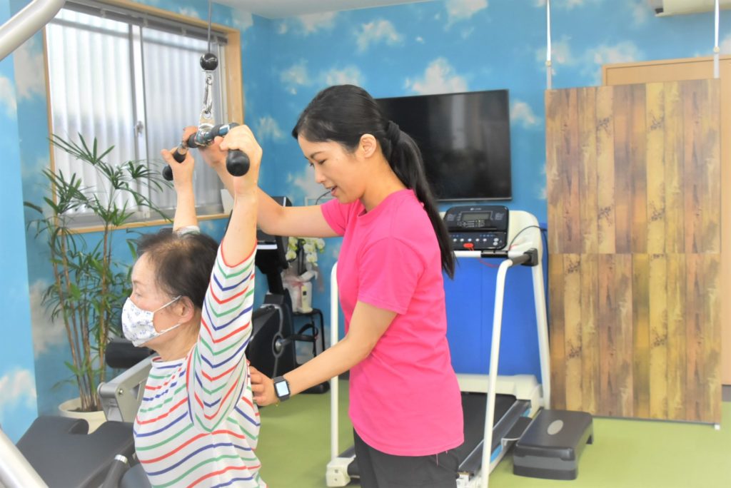 電気治療器械、セルフストレッチ指導、簡単な体のチェックとワンポイント矯正